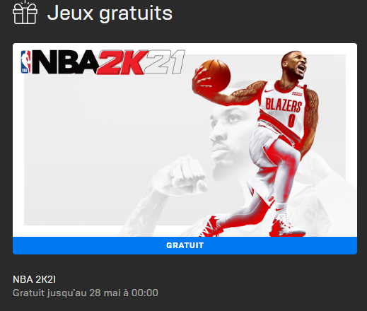 NBA 2K21 gratuit sur l’Epic Store ! Vous connaissez la chanson, pas vrai ? Rendez-vous sur le launcher d’Epic Games et connectez-vous. Une fois connecté, dirigez vous vers l’onglet de la boutique et descendez jusqu’à atteindre la catégorie « Jeux gratuits ». Cliquez ensuite sur le bouton « Obtenir » et voilà, il fait NBA 2K21 partie de votre librairie.